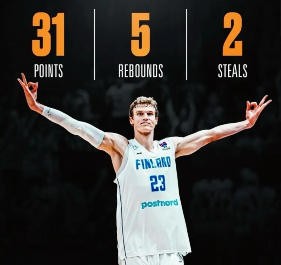 在此前结束的一场欧洲杯热身赛里,马尔卡宁继续上演炸裂表现!此役,手感持续滚烫的他火力全开,全场12中8,三分6中4,12罚11,狂砍31分5篮板2抢断。在马尔卡宁势如破竹的迅猛攻势下,芬兰男篮最终以92-74轻松击败比利时男篮,对其轻松完成热身赛两连胜。